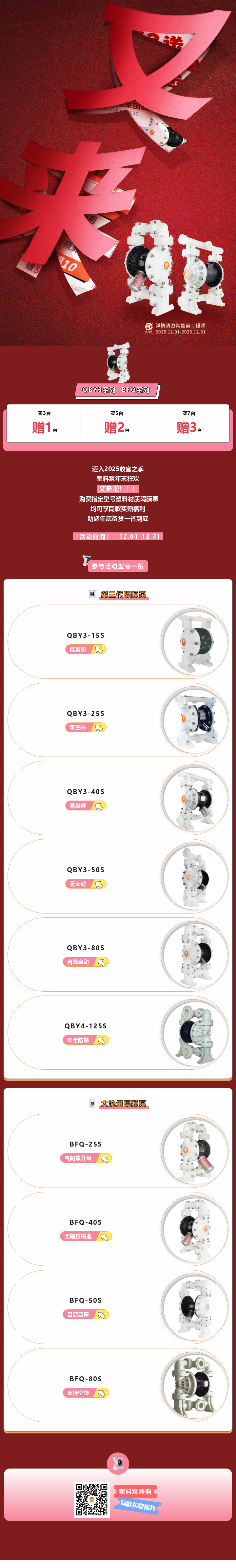 又來?!對!塑料泵年末買贈狂歡又來啦! 2025/12/12 邁入2025收官之季,塑料泵年末狂歡又來啦!?。?/span> 12.01~12.31期間,購買指定型號塑料材質隔膜泵,均可享同款買贈福利,助您年底備貨一省到底 塑料泵年末買贈狂歡火熱進行中